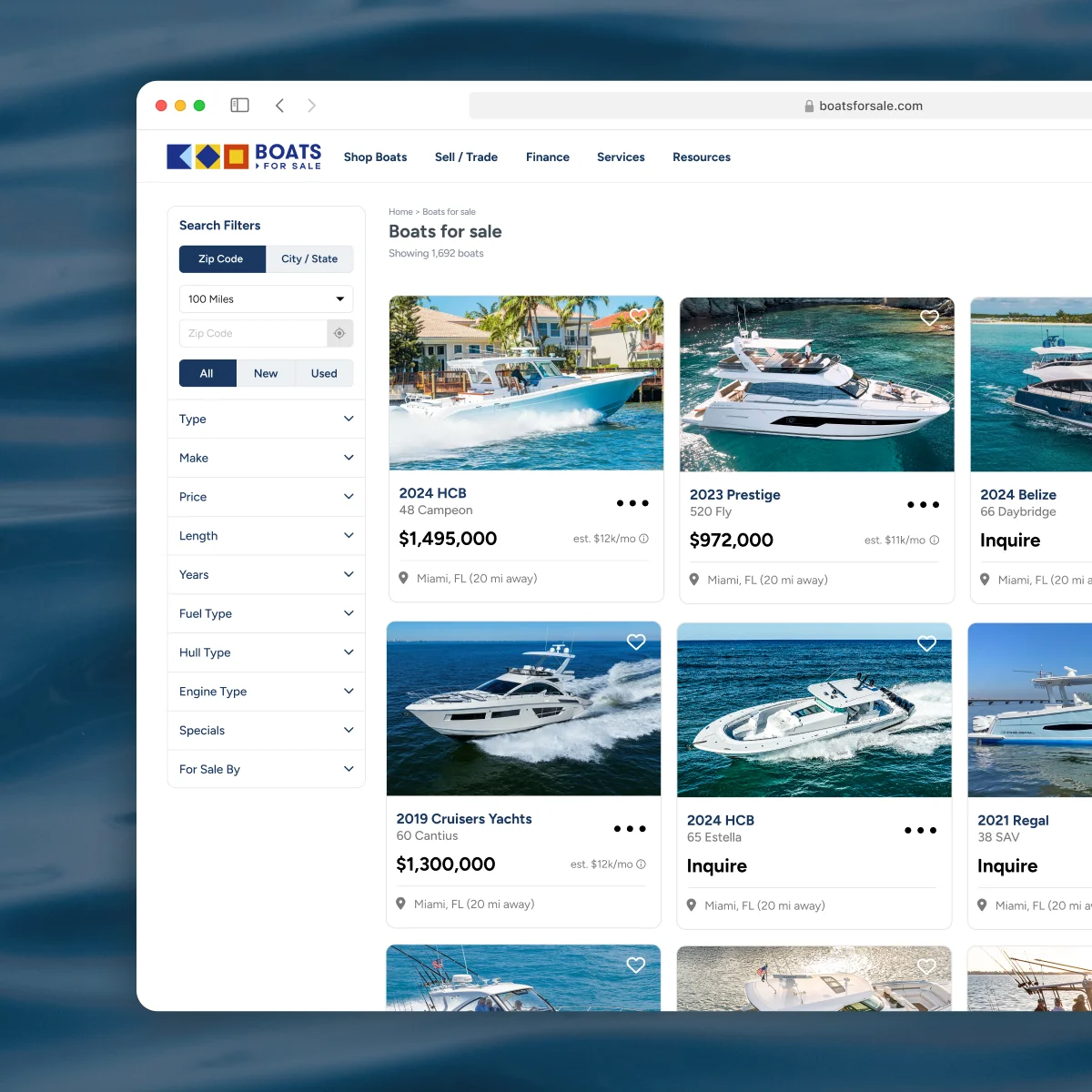 We helped rebuild BoatsForSale.com from the ground up with a modern design system, improved performance, and a buyer-first user experience. With our work, the platform became the 3rd largest online boat marketplace in the country, and was acquired in 2025.